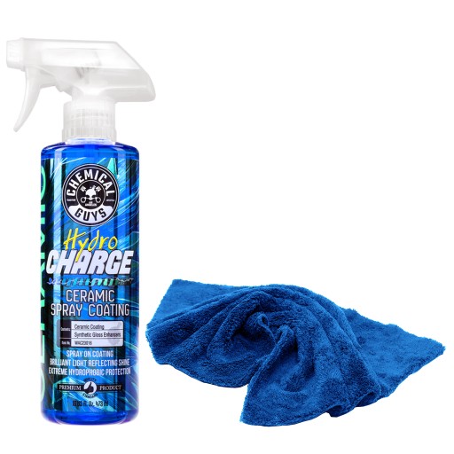 - 1 SZT. CHEMICAL GUYS HYDROCHARGE 473ml - to łatwa w użyciu powłoka ceramiczna z nanocząsteczkami SiO2 w sprayu. Zapewnia niesamowicie głęboki połysk, ekstremalne właściwości hydrofobowe i trwałą ochronę powłoki ceramicznej do roku czasu. Zapobiega rysowaniu i powstawaniu hologramów.