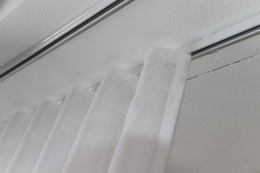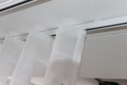 ✅ W ślizgi wsunięte w szynę sufitową wpina się agrafkę francuską.