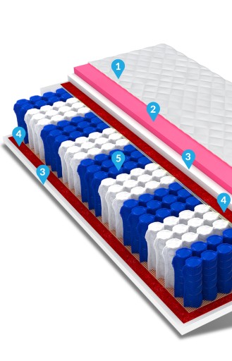 Dzięki strefom o zróżnicowanej twardości zapewnia ergonomiczną pozycję ciała podczas wypoczynku. Niezależna praca sprężyn eliminuje efekt wyginania się dużej powierzchni materaca przy nacisku na jego małą powierzchnię, dzięki czemu wszelkiego rodzaju obracanie, czy wiercenie nie będzie odczuwalne dla drugiej osoby.