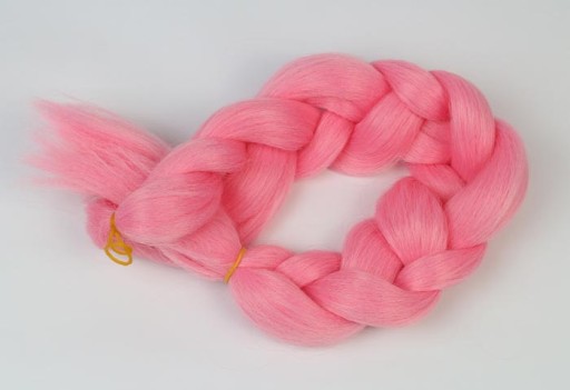 Włosy syntetyczne w przepięknym wariancie kolorystycznym -różowym. Wykonane z puszystego poliestru.
