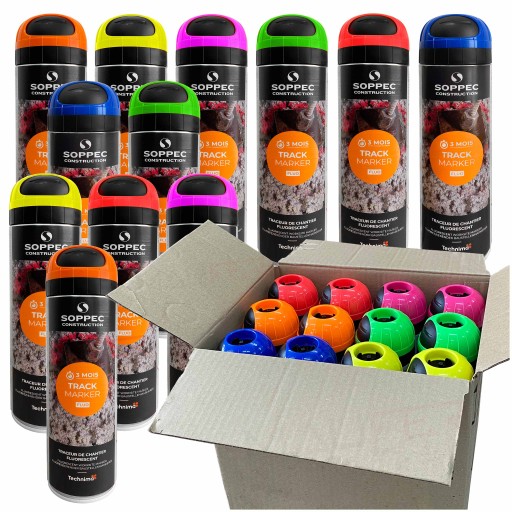 TRACK MARKER firmy Soppec to farba fluorescencyjna w aerozolu przeznaczona do wykonywania oznaczeń na placach budowy oraz do znakowania przy pracach geodezyjnych i pomiarowych. Z jej pomocą wykonamy widoczne, odblaskowe oznaczenia zaznaczając pole pod wykop lub znacząc dokonane pomiary...
