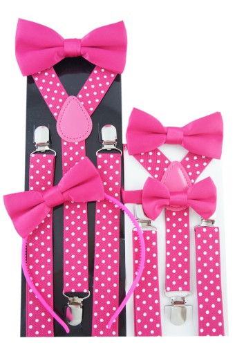 Подтяжки для брюк и галстук-бабочка в горошек, Карнавальная вечеринка, ФУКСИЯ РОЗОВАЯ
