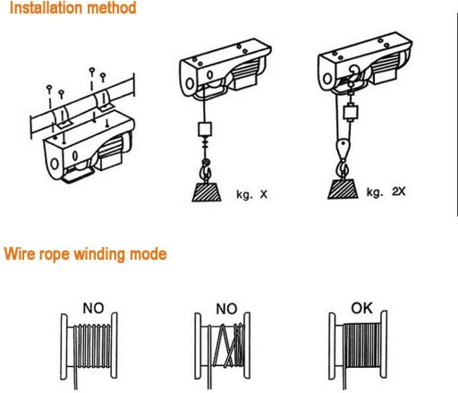 - Wyciągarka jest wyposażona w przycisk z wyłącznikiem awaryjnym, aby zapewnić wypadek podczas pracy. Klasa ochrony: IP40