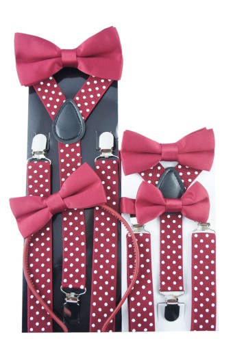 бордовые мужские подтяжки и галстук-бабочка в горошек