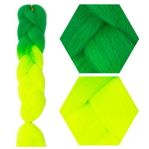 Włosy syntetyczne w przepięknym wariancie kolorystycznym -zielono-żółtym. Wykonane z puszystego poliestru.