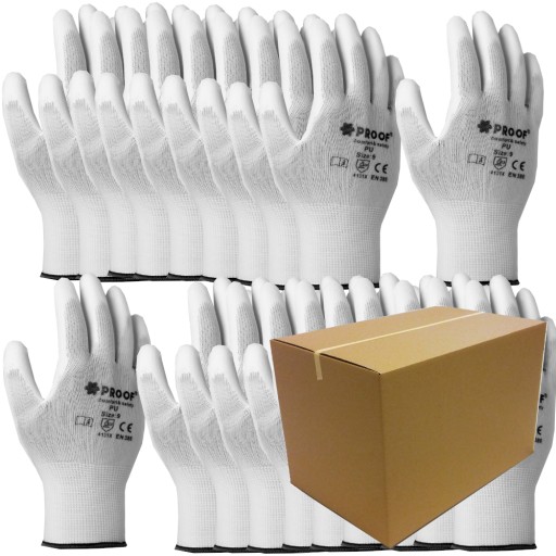 RĘKAWICE ROBOCZE BIAŁE PU PROOF RĘKAWICZKI 8-10par