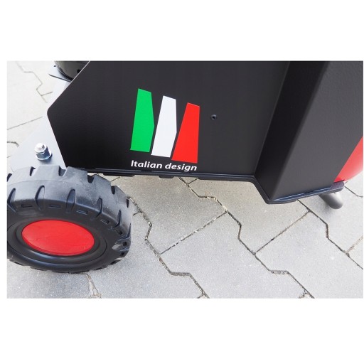 - Praca w terenie: Urządzenie zostało zaprojektowane do pracy w terenie, na nierównym podłożu. Posiada mechaniczną blokadę wagi oraz pompowane kółka.