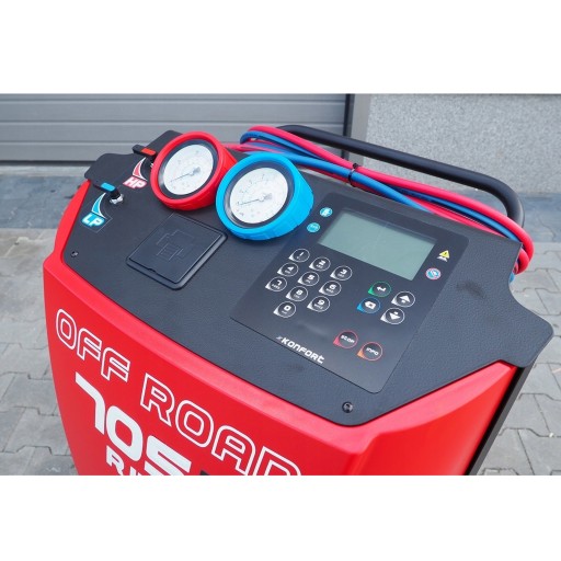 KONFORT 705R Off Road zaprojektowana dla użytkowników poszukujących urządzenia skutecznego, prostego w obsłudze, ale oferującego możliwość wykonywania wszystkich operacji z zakresu obsługi układu klimatyzacji na czynnik R134a,przedstawiona werjsa to Texa 705 OFF ROAD przeznaczonej do zastosowań w terenie gdzie panują utrudnione warunki pracy. Stacja jest wyposażona w dwa duże, tylne koła, wypełnione elastyczną pianką odporną na uszkodzenia. Solidna metalowa podpora zastępuje przednie koła, zwiększając stabilność podczas użytkowania. Kolejnym elementem, zaprojektowanym specjalnie do zastosowania poza warsztatem, jest system blokady wagi, dzięki któremu unikamy problemów wynikających z przemieszczania stacji po nierównym terenie.