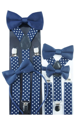 ТЕМНО-СИНИЙ Мужские подтяжки и галстук-бабочка в горошек