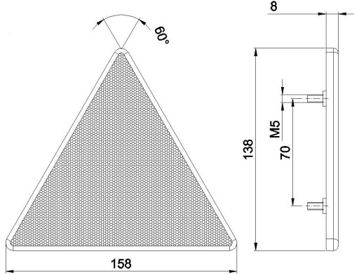- 2 odblaski trójkątne ze śrubami koloru czerwonego.