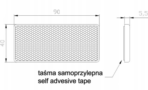- 2 odblaski prostokątne białe przyklejane na taśmę