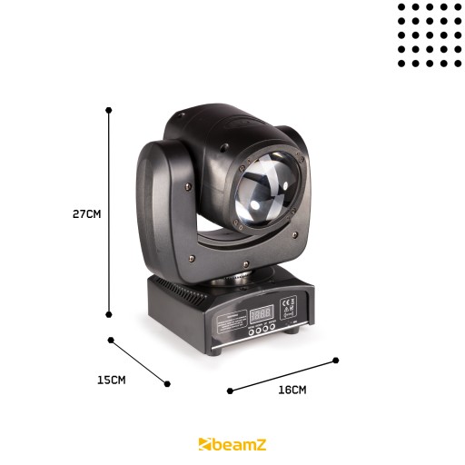 Beamz Panther 85 to kompaktowa ruchoma głowa LED z potężnym źródłem światła. Wysokowydajna dioda LED RGBW o mocy 80W zapewnia ścisłą wiązkę w dowolnym pożądanym kolorze. Panther 85 jest wyposażona w funkcję plug&play z wbudowanymi funkcjami auto i aktywacją dźwiękiem, a w trybie DMX zapewnia pełną kontrolę dzięki 13 dostępnym kanałom DMX. Funkcje obejmują regulowaną prędkość stroboskopu, ściemniacz 0-100%, wstępnie zaprogramowane pokazy i synchronizację master/slave.