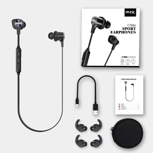 Konstrukcja magnetyczna pomaga zamocować słuchawki sportowe na szyi, zapewniając wygodne przechowywanie, gdy nie są używane. Przełączanie muzyki i zmiana głośności są dostępne za pomocą sterowania na linii. Bezprzewodowe słuchawki MTK zapewniają łatwy dostęp do głośnomówiącego i wyraźnego połączenia w czasie sportu, odległość połączenia do 15 M.