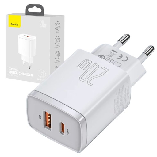 ЗАРЯДНОЕ УСТРОЙСТВО BASEUS FAST USB/USB-C 20 Вт, 3 А, УНИВЕРСАЛЬНОЕ СЕТЕВОЕ ЗАРЯДНОЕ УСТРОЙСТВО ДЛЯ ТЕЛЕФОНА