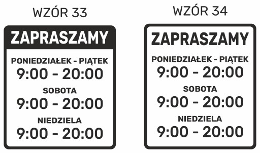 Wzór wiadomości: WZÓR 033 / PON.-PT. 9:00 - 20:00 / SOBOTA - 10:00 - 22:00 / NIEDZIELA - NIECZYNNE / Kolor biały matowy