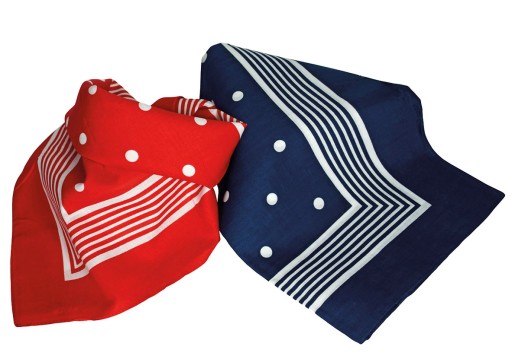 Apaszka żeglarska w pasy i groszki firmy Crazy 4 Sailing. Chusta występuję również w kolorze granatowym.