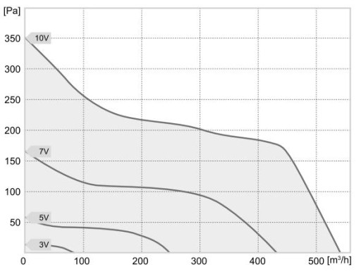 Pokrętło regulacji wydajności umożliwia nastawę prędkości obrotowej wentylatora, w pełnym zakresie jego charakterystyki.