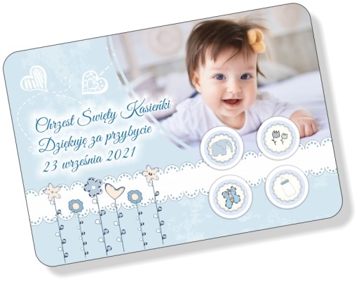Podziękowanie lub pamiątka w formie magnesu na Chrzest, Baby Shower, Roczek lub inna dowolną okazję.
