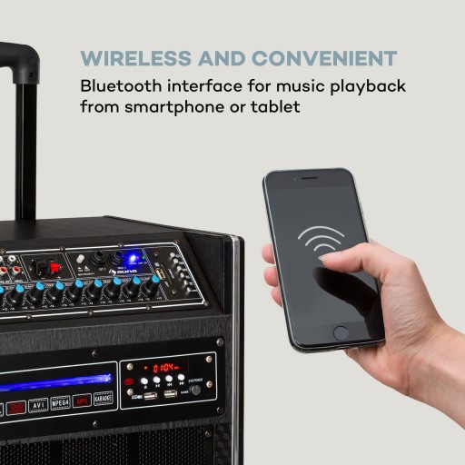 - Mocny dźwięk: Przenośny zestaw nagłośnieniowy do karaoke i konferansjerki z subwooferem 2 x 10 (25,5 cm)