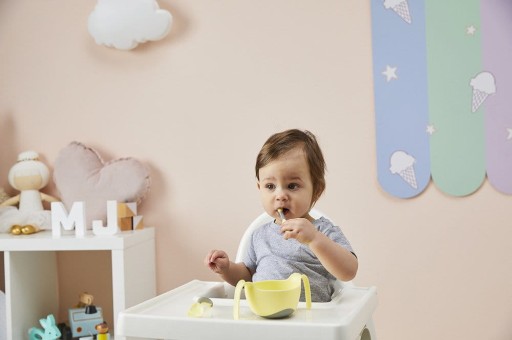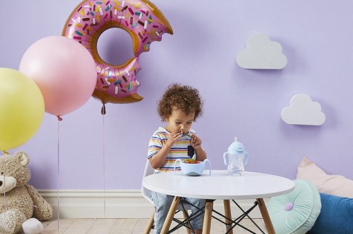 - stworzony po to by ułatwić maluchom naukę samodzielnego jedzenia;