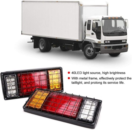 Wysokiej jakoci powoka jest odporna na korozj mocna i trwaa w uyciu. Dziki metalowej ramie skutecznie chroni tylne wiato i przedua jego ywotno. ródo wiata 40LED wysoka jasno poprawiaj widoczno i zapewniaj bezpieczeństwo jazdy. Szeroko stosowany odpowiedni do wikszoci ciarówek przyczep przyczep kempingowych kamperów autobusów itp. Prosty w instalacji bez modyfikacji wygodny w uyciu.