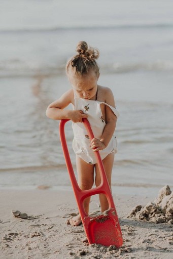 Łopatka z sitkiem Scoppi belgijskiej marki Quut przyciąga wzrok niebanalnym designem i oryginalną kolorystyką. Jest duża, a przy tym poręczna, lekka i łatwa do utrzymania przez dziecko. Do jej używania dzieci mogą wykorzystywać zarówno obie ręce, jak i nogi, w podobny sposób, jak robią to dorośli np. z szuflą czy łopatą. Na wyposażeniu łopatki znajduje się również spore, prostokątne sitko w kontrastowym kolorze, które można odczepić na czas zabawy, a po zabawie przyczepić z powrotem (na tzw. klik) dla wygodniejszego przechowywania i przenoszenia zestawu. Gwarantuje inteligentną aktywność na świeżym powietrzu, i to przez cały rok. Łopata sprawdza się bowiem nie tylko przy budowaniu fortów i fos, przesiewaniu piasku, ale także do zabaw w wodzie, śniegu czy ogrodzie.