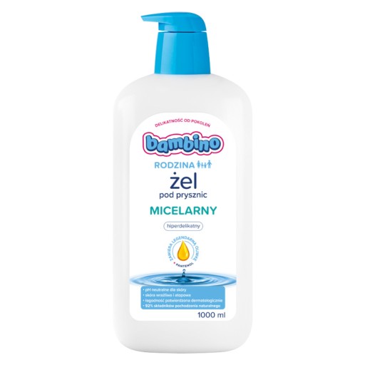 Zestaw BAMBINO Rodzina Micelarny żel pod prysznic hiperdelikatny, 1000 ML + Micelarny żel pod prysznic hiperdelikatny refill 900 ML