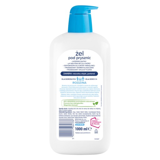 Żel pod prysznic Bambino RODZINA utrzymuje prawidłowe nawilżenie skóry i pomaga zapobiegać podrażnieniom. Delikatna, lekka formuła skutecznie oczyszcza skórę i pozostawia uczucie świeżości oraz subtelny zapach. Jest idealny do codziennej pielęgnacji różnego typu skóry, w tym skłonnej do podrażnień.