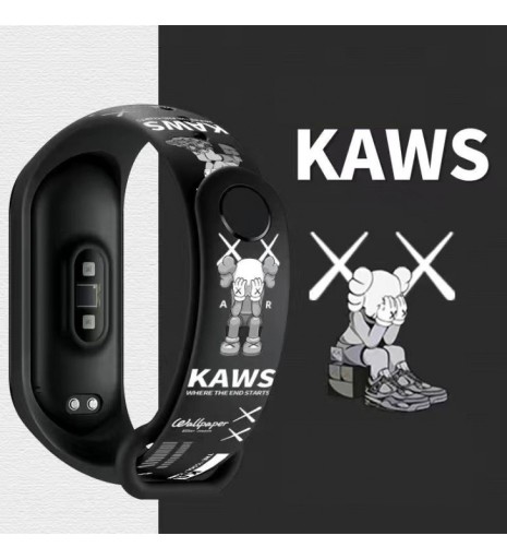 Pasek do zegarka smartband , wykonany z mieszanki silikonu i kauczuku jest bardzo giętki a zarazem masywny. Pasek ozdobiony jest motywem graficznym. Mieszanka silikonu i kauczuku najadę mu właściwościowi wodoodporne, pasek bez obaw może mieć kontakt z wodą jest wodoodporny.