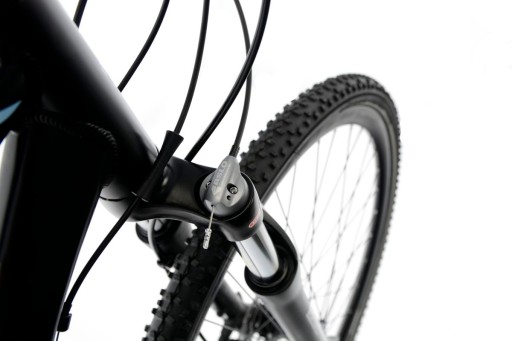 Na uwagę również zasługuje zastosowany widelec amortyzowany marki SR Suntour z manetką blokady skoku na kierownicy. Kolejnymi zaletami roweru są solidne dwukomorowe kapslowane obręcze, wygodne siodełko, mocne oraz niezawodne hamulce hydrauliczne Shimano. Rower została również wyposażony w stopkę.