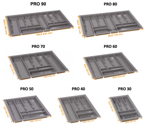 Krawędzie wkładu można przyciąć we własnym zakresie o około 2 cm, zarówno na szerokość jak i na głębokość, tak aby mieściły się w mniejszych szufladach.