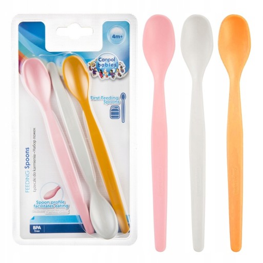 Zestaw zawiera 3 różnokolorowe łyżeczki o matowym wykończeniu, przeznaczony jest dla dzieci powyżej 4. miesiąca życ