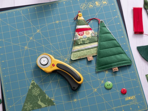 Cięty materiał cały czas leży płasko na macie, można więc na nim położyć wykrój, szablon lub linijkę i ciąć wzdłuż nich.