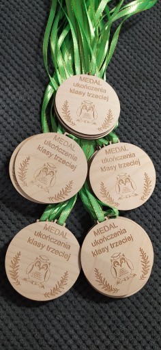 Medal wielkości 8cm (najdłuższy wymiar) wykonany z drewna brzozowego.