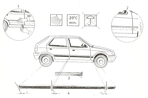 - Zaleca się kleić w temperaturze powyżej 20'C. Przy niższych temperaturach nalezy podgrzać karoserię w miejscu klejenia listew np. suszarką do włosów.