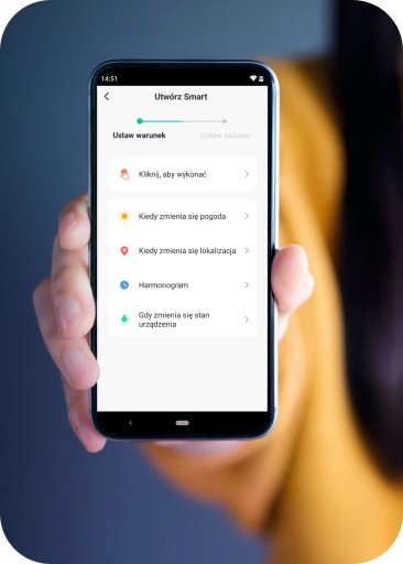 W zależności od warunków pogodowych możesz wyzwalać zaprogramowane scenariusze np. wschód słońca – gasi światło na podjeździe, zachód słońca – włącza światło na podjeździe.