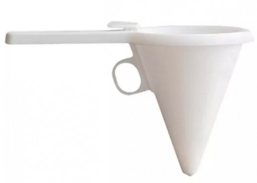 Poręczny lejek z uchwytem do dozowania ciasta lub polewy do dekoracji ciasta czy też muffinek itp.