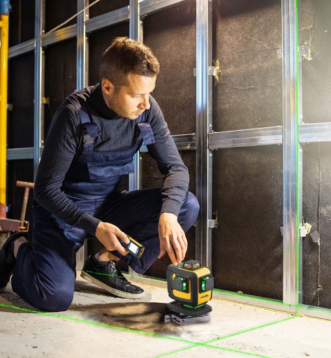 - dokładność i niezawodność – wyraźna wiązka niebieskiego lasera (505nm) gwarantuje komfortową pracę w każdych warunkach, sprzęt umożliwia pracę z dokładnością ±1 mm/10 m
