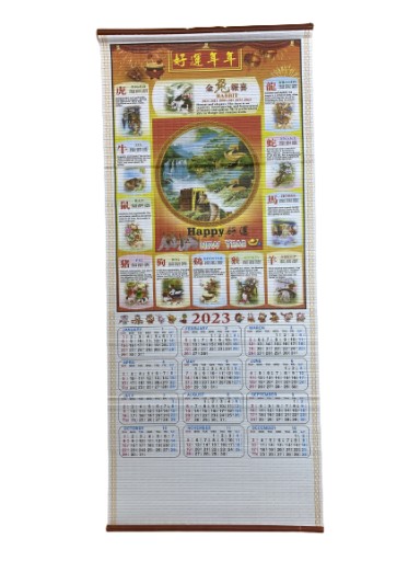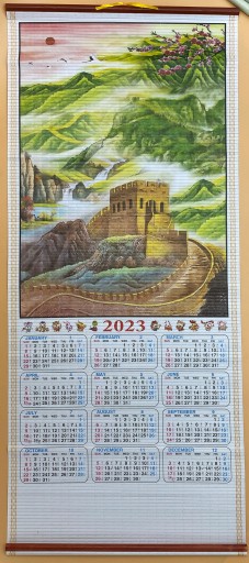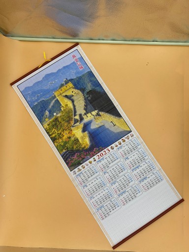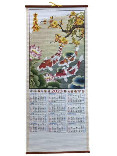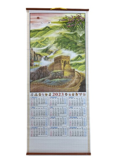Oryginalny wyprodukowany w Chinach trzcinowy kalendarz ścienny.
