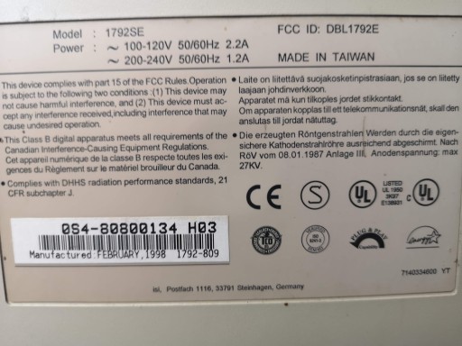 Do sprzedania posiadam stary 17" monitor ("z dupą") z 1998 roku ISI 1795, model 1792SE.