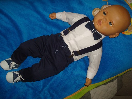WZÓR NR.2 SPODNIE BIAŁE Z GRANATOWĄ NITKĄ