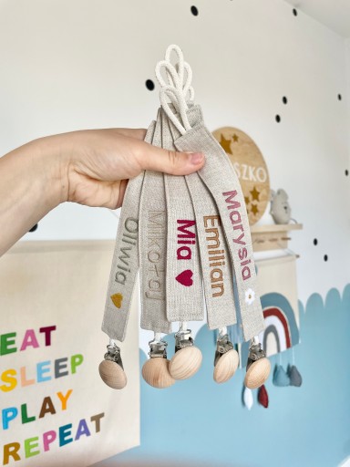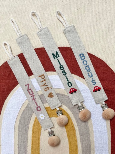 To wspaniały pomysł na prezent dla maluszka z okazji narodzin lub chrztu, dobrze sprawdzi się w żłobku:). Jest bardzo lekka, wykonana z naturalnego lnu. Duża ilość kolorów haftów sprawia, iż zawieszka może być w 100% spersonalizowana i dopasowana do upodobań maluszka oraz mamy. Produkt wykonywany ręcznie z dbałością o każdy szczegół.