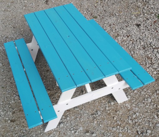 Przedmiotem oferty jest stolik piknikowy w kolorze BIAŁYM I NIEBIESKIM.