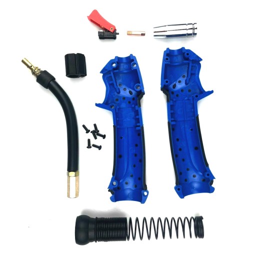 - Uzbrojony UCHWYT MIG/MAG MB 15 o długości 3m (izolator, gniazdo prądowe, końcówka prądowa, dysza gazowa).