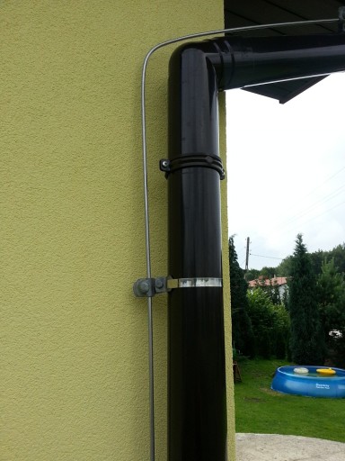 Obejma umożliwia bezpieczne i estetyczne poprowadzenie drutu odgromowego po rynnie spustowej. Dzięki niej można uniknąć konieczności wiercenia otworów w elewacji budynku, co mogłoby prowadzić do uszkodzenia izolacji oraz pogorszenia estetyki.