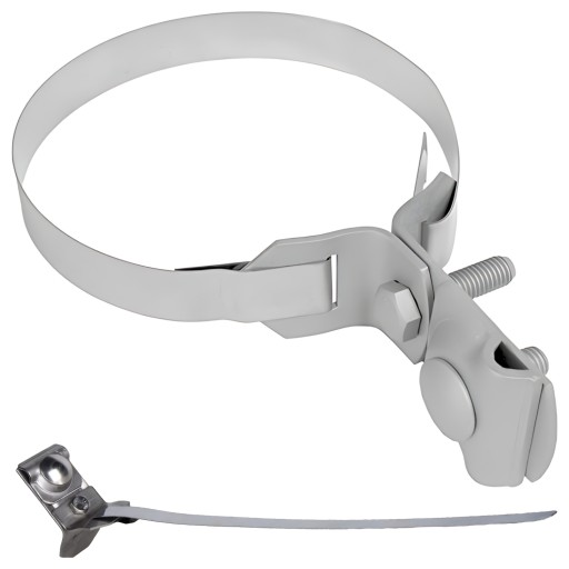 Bardzo solidna obejma do rynny w całości wykonana ze stali nierdzewnej. Wygodna regulacja średnicy zapewnia niezawodne mocowanie uchwytu i drutu odgromowego do rynien o maksymalnej średnicy 120mm.