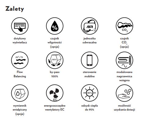 - funkcja Flow Balancing – gwarantująca zrównoważoną wentylację nawiewno – wywiewną.