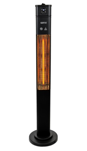 Promiennik podczerwieni GOTIE GOE-1600 wykonany jest z materiałów odpornych na warunki atmosferyczne i posiada normę ochrony IP44. Szeroka, dociążona podstawa gwarantuje stabilność. Element grzewczy zabezpieczony jest przez metalową siatkę.