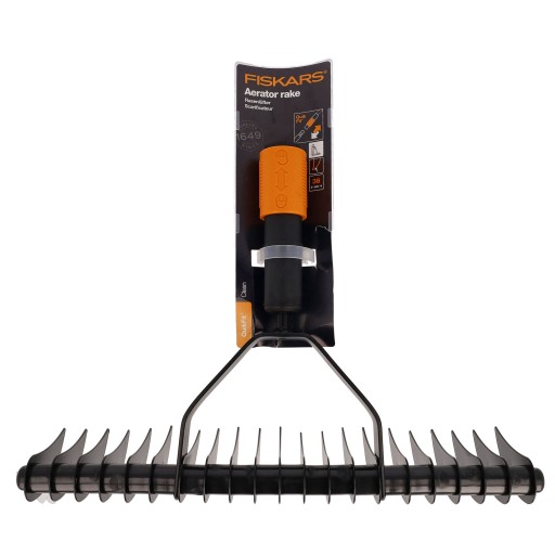 Metalowy skareator Fiskars umożliwia dokładne czyszczenie trawników, przeznaczony jest do usuwania strzechy lub mchu.
