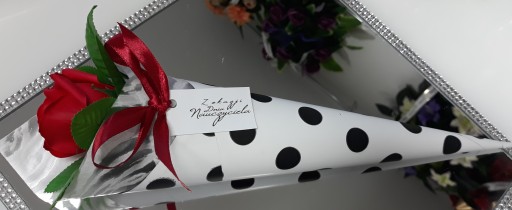 Róża mydlana w rożku to znakomity prezent dla nauczyciela, na imieniny, urodziny, walentynki, dzień kobiet...który sprawi obdarowanej osobie mnóstwo pachnącej radości...